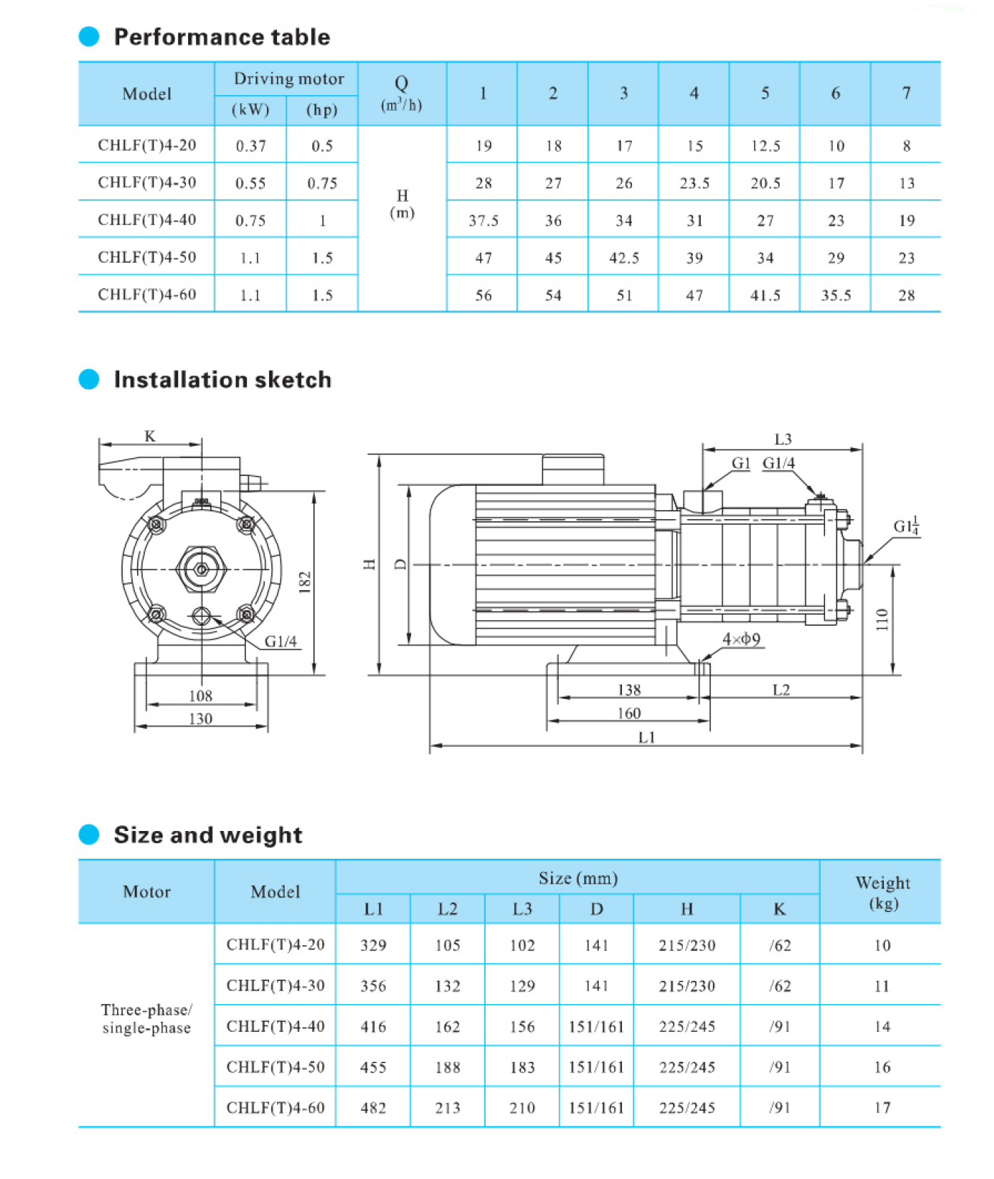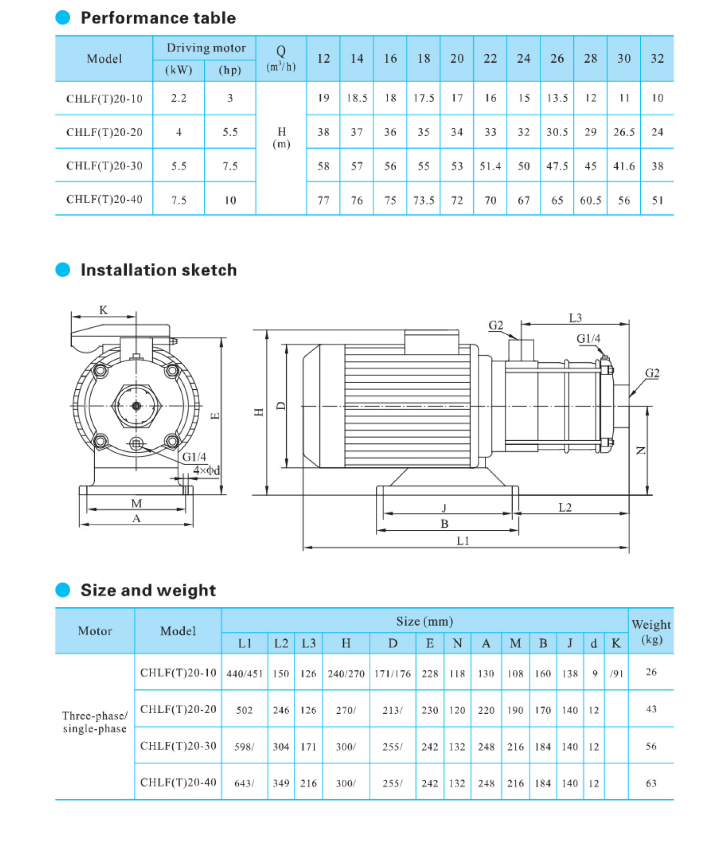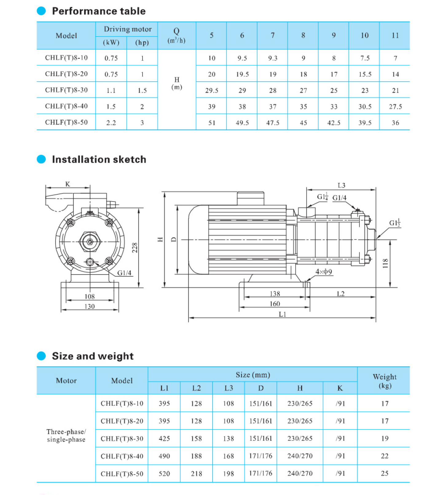A bomba centrífuga multiestágio horizontal de aço inoxidável de alta resistência da série CHLF é fornecida com motor de eixo estendido horizontal, sucção axial e descarga radial.