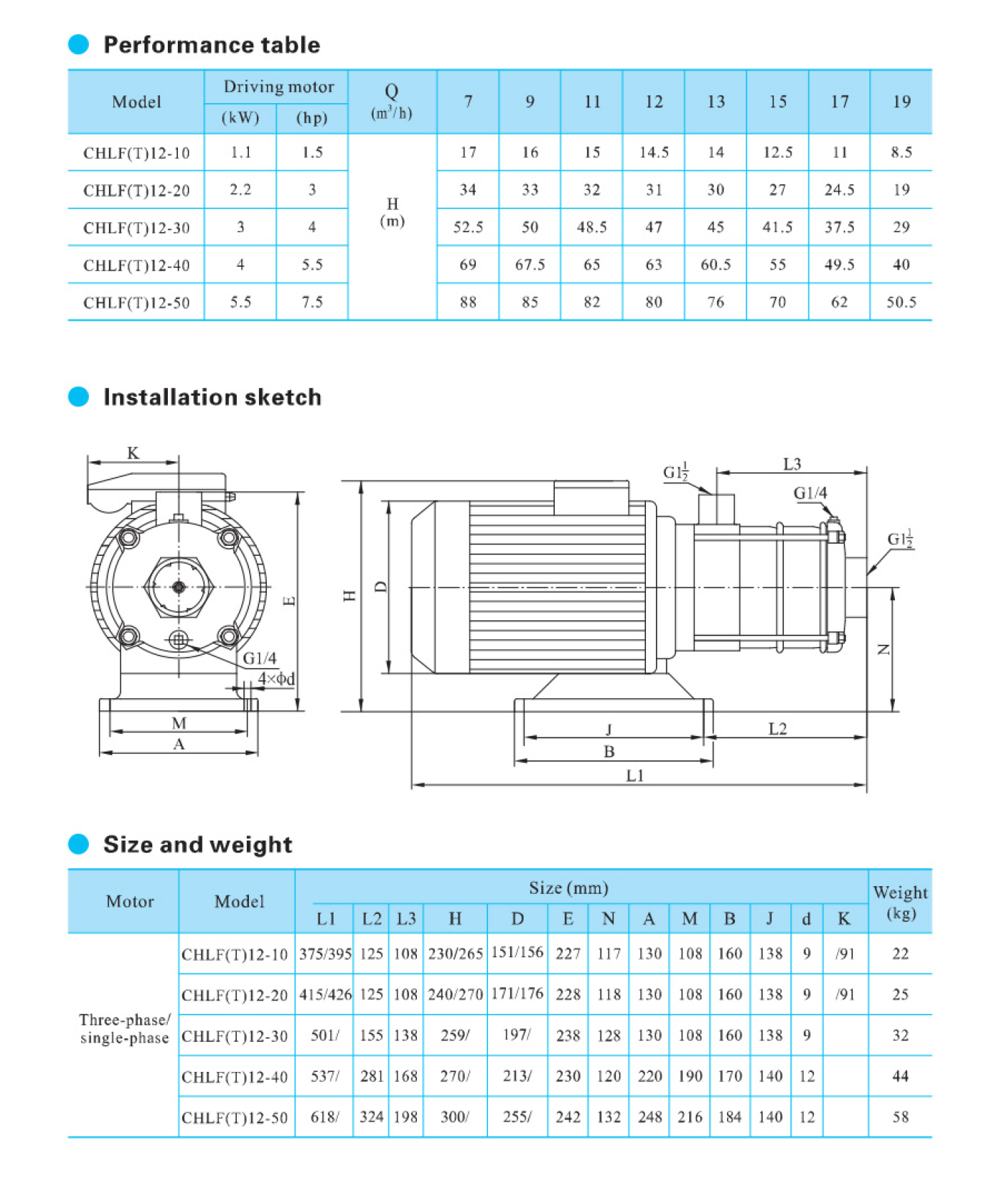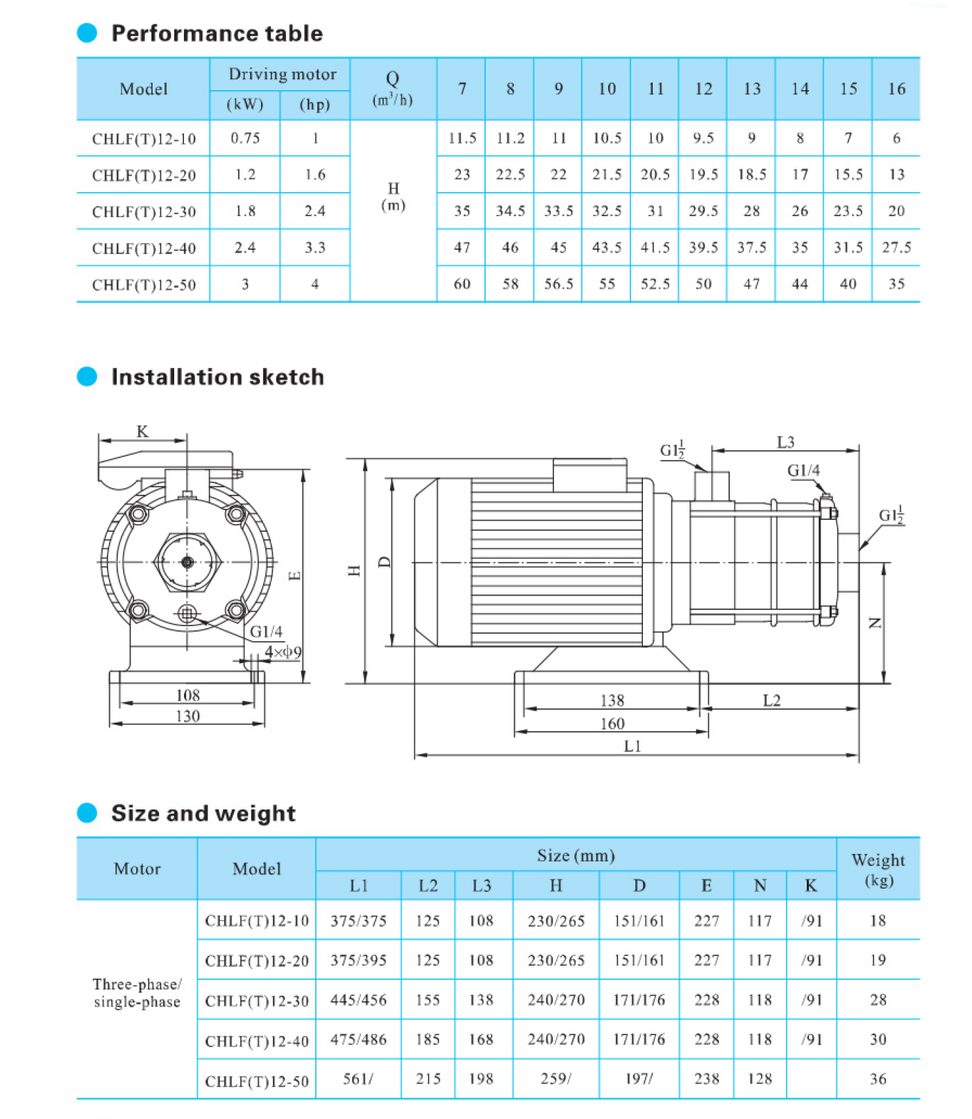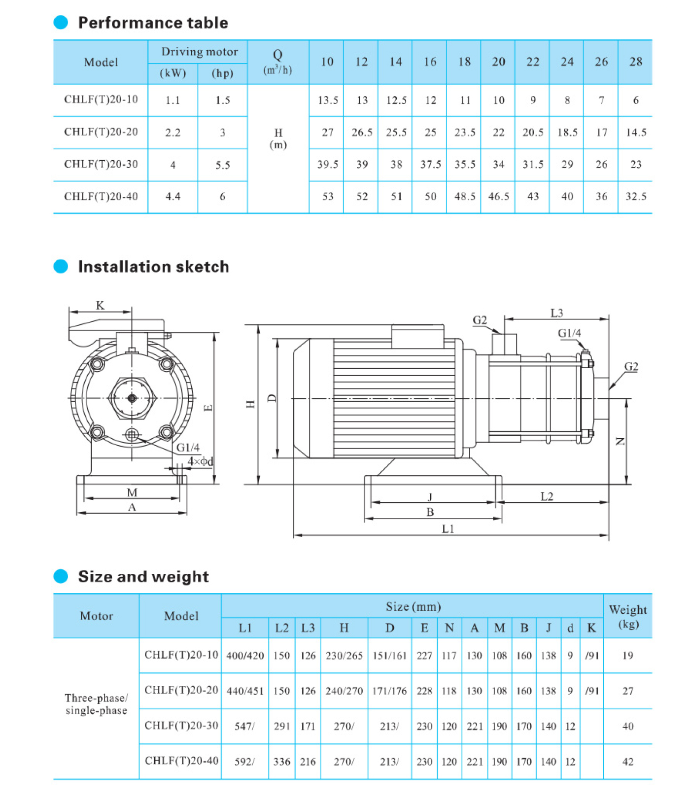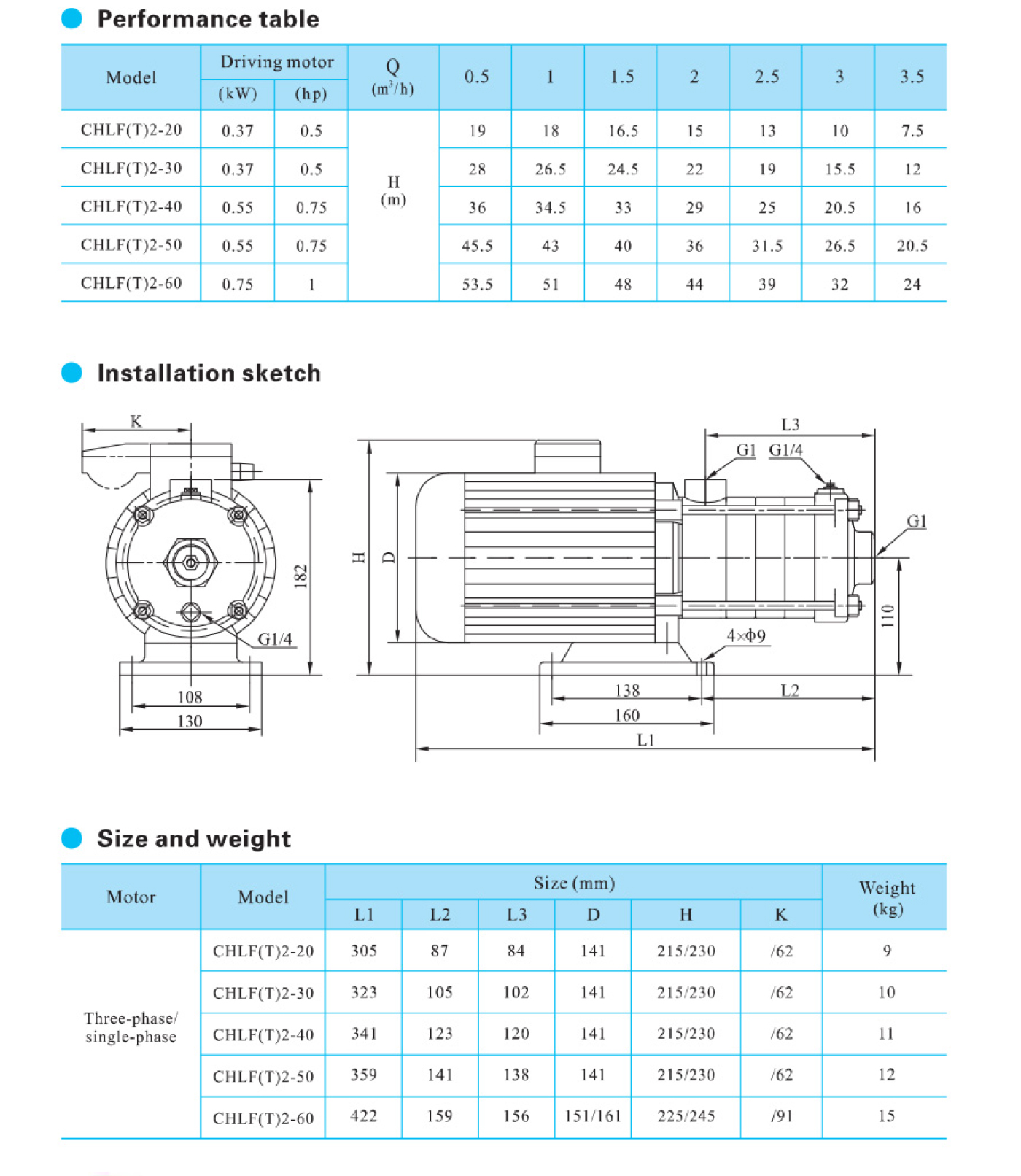 A bomba centrífuga multiestágio horizontal de aço inoxidável de alta resistência da série CHLF é fornecida com motor de eixo estendido horizontal, sucção axial e descarga radial.